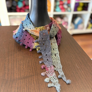 If you know Fiber Arts, you may have heard about the famous knitted Sophie Scarf. Well, here is a spin on a crocheted scarf! This project teaches you how to increase and decrease, as well as other embellishments, mini pom-poms for the edging, and skipped stitches to create holes that allow the sun to come through. This is a charming scarf that would be great to wear in the spring. Please join me, Winnie, to make this beautiful scarf for yourself or as a gift for a friend.